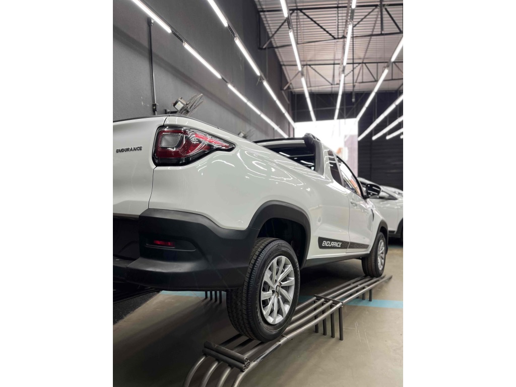 A Fiat Strada Endurance 1.4 Flex Plus é uma picape compacta voltada para trabalho, equipada com motor 1.4 de até 88 cv, câmbio manual de 5 marchas e tração dianteira. A versão "Plus" adiciona equipamentos de conforto e segurança como ar-condicionado, direção hidráulica e assistente de partida em rampa. Ela possui boa capacidade de carga de \(720\) kg e \(1354\) litros, além de um visual robusto.